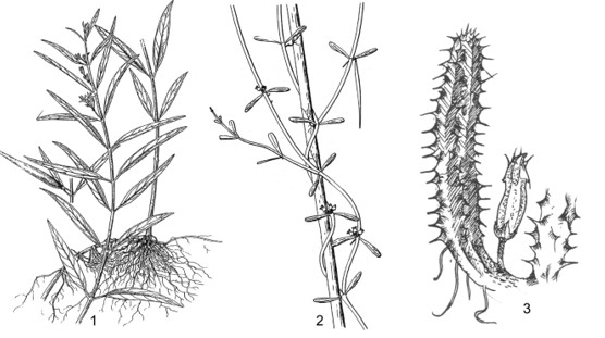 1. thân đứng (Cynanchum stauntonii (Decne.) Hand.-Mazz.); 2. thân leo (Dischidia bengalensis Colebr.); 3. thân hình như Xương rồng (Tavaresia barklyi N. E. Br.)