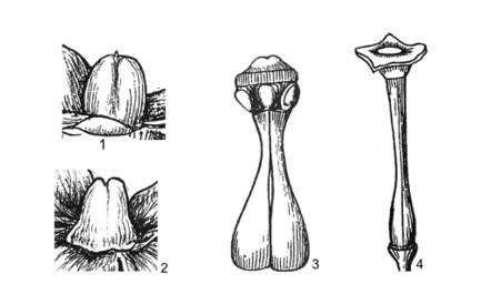 1, 2. bầu không thót lại (1. Hoya bonii Cost.; 2. Hoya griffithii Hook. f.); 3, 4. bầu thót lại [3. Oxystelma esculentum (L. f) R. Br. ex Schult.; 4. Calotropis gigantea (L.) Dryand. ex Ait. f.]
